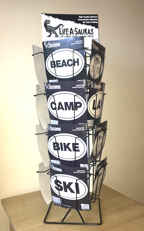 Life-A-Sauras™ Merchandising programs are built to encourage complete sell through. Our high-quality, black wire Countertop and Floor display units clearly display the decals, engage customers, allow for easy interaction and purchase.